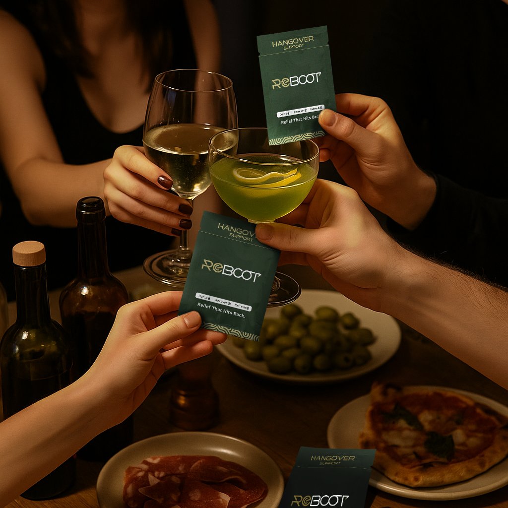 REBOOT HANGOVER is your simple, two-step ritual made for real life: one serving while you drink, one after drink / before sleep. It’s fast, it’s effective, and it’s your budget-friendly backup for better mornings.
